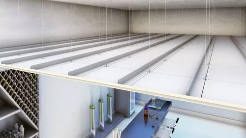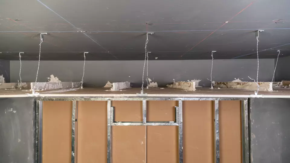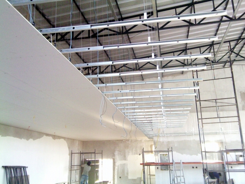 O Forro de Gesso Acartonado Aramado é formado pela justaposição de chapas de gesso, unidas por meio de junções H e suspenso por arame de aço galvanizado. Este, não existe estrutura: as placas são penduradas com arame 18 diretamente no teto.